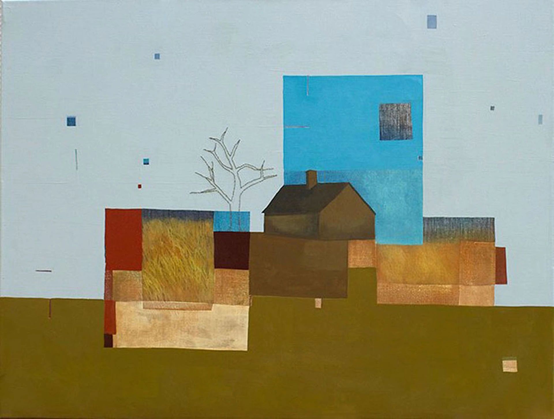 View from Afar, 30" x 40", acrylic on linen with hand-stitching